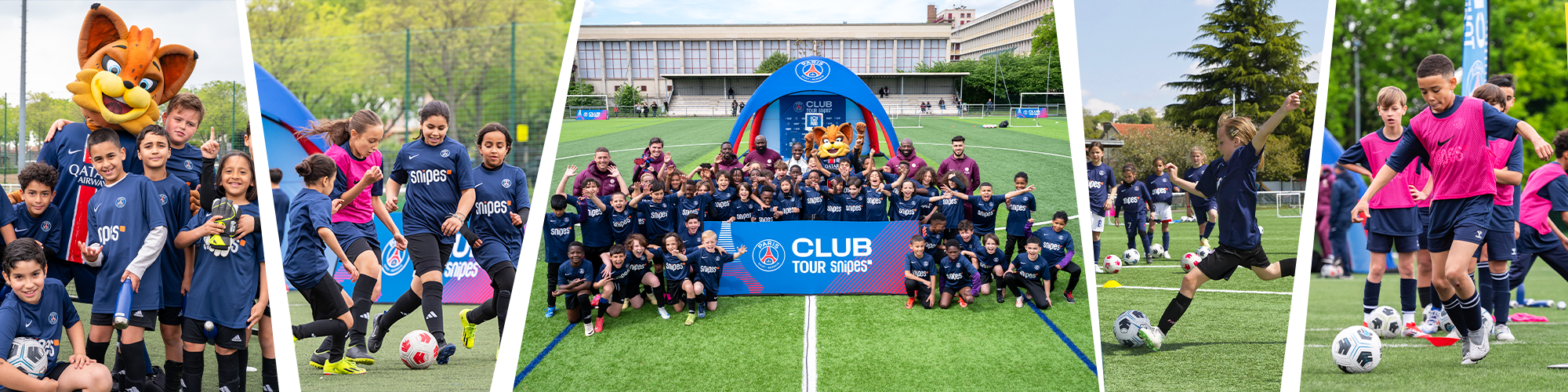 Depuis 2021, les Entraînements du Club Tour SNIPES permettent aux jeunes licencié(e)s (U11 et U13) de clubs amateurs d’Île-de-France de s’entraîner, le temps d’un après-midi, comme les joueur(se)s du Paris Saint-Germain.